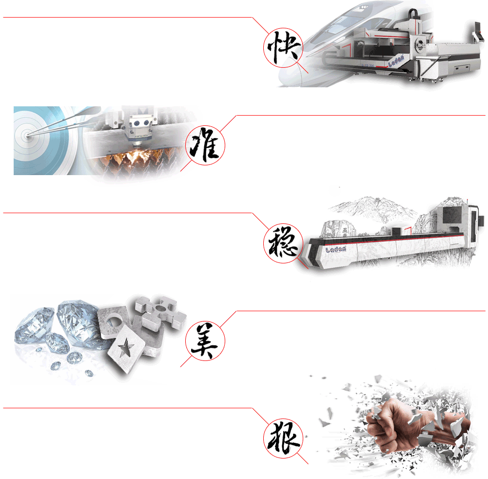 互換臺面光纖激光切割機(高效型) 板材切割:碳鋼板、不銹鋼板、鍍鋅板、電解板、硅鋼、錳鋼、鋁合金、黃紫銅板等多種金屬材料。廣泛應用于:廚房電氣、鈑金機箱機柜、機械設備、電器設備、燈飾五金、廣告標牌、汽車配件、展示器材、各種金屬制品、鈑金切割加工等行業(yè)。